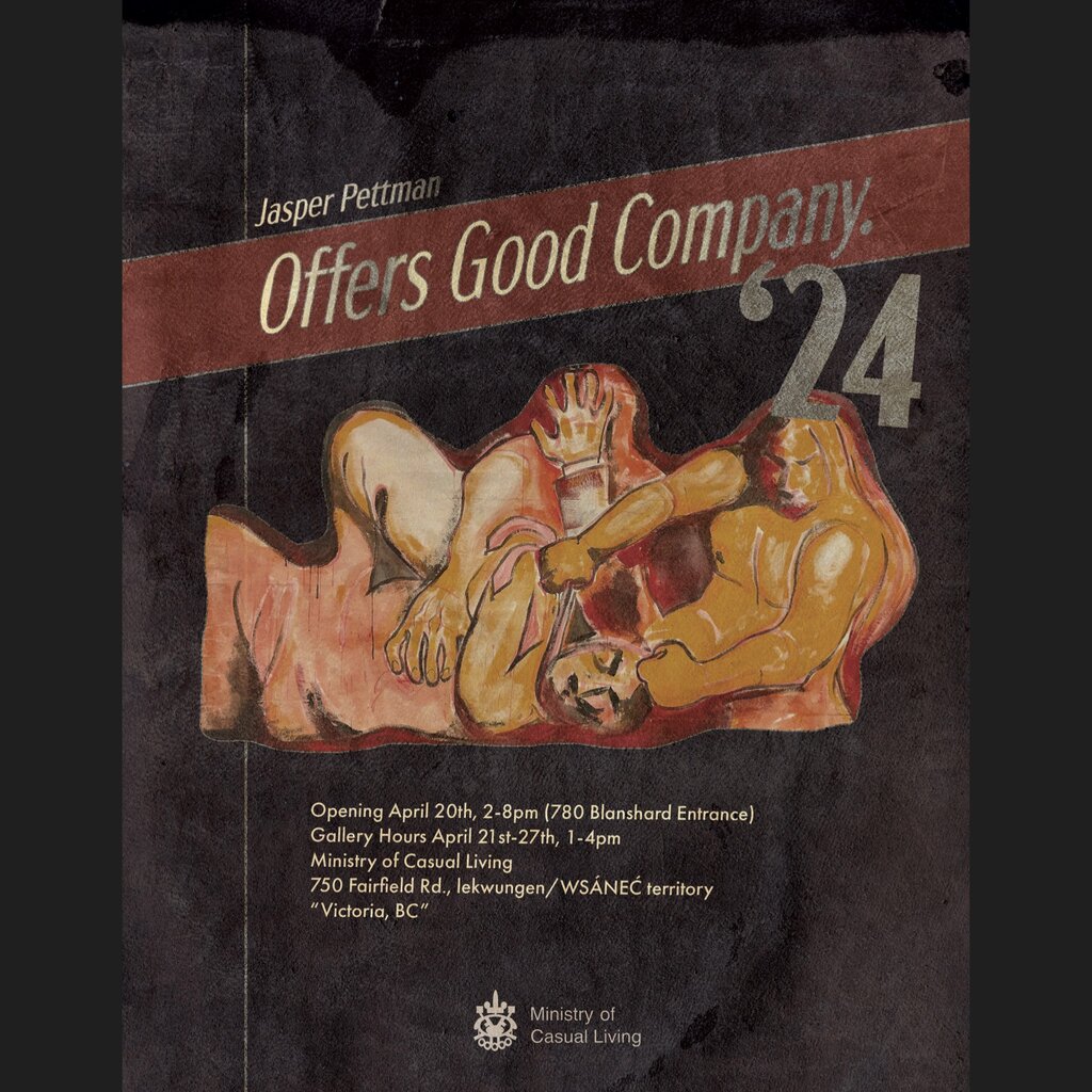 The Ministry of Casual Living Gallery is excited to announce our April artist; Jasper Pettman! Join us on April 20th for Jasper’s opening of “Offers Good Company,” from 2-8pm! Happening at the same time as our building’s open house! For this day only, entry is from 780 Blanshard.